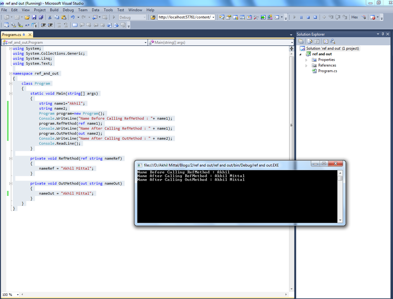 One might incorporate n number of methods to return or pass parameters while method calling. Most of the time a developer try to escape using c# feature of parameter passing by reference.Had he know the power of ref and out, a developer will certainly make full use of this feature of parameter passing. My effort in this article would be to make this understanding simpler and focus on internal logic of ref and out.