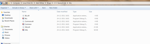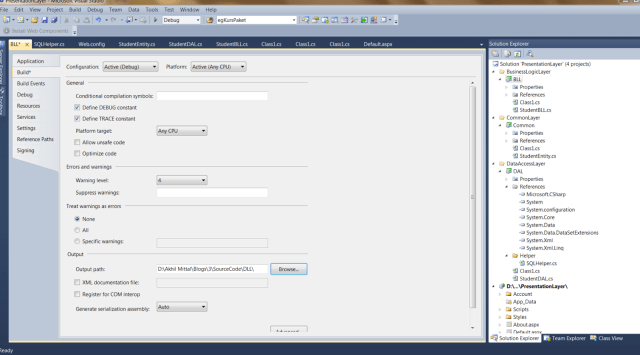 Do this for DAL and Common Layer as shown in Figure 8.Aftre compling all the projects we get dll’s in DLL folder created.
