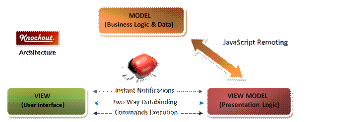 ViewModel on the client (browser) following observer pattern approach, enabling UI to bind and refresh itself automatically whenever the data bound is modified. Knockout.JS provides its own templating pattern that helps us to bind our view model data easily. KO works on MVVM pattern i.e. Model-View-ViewModel.- Automatic Refresh of UI