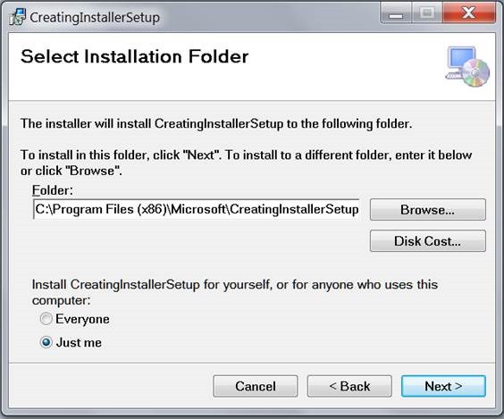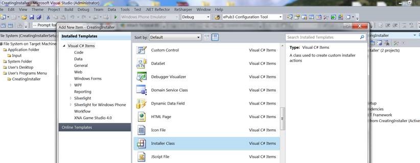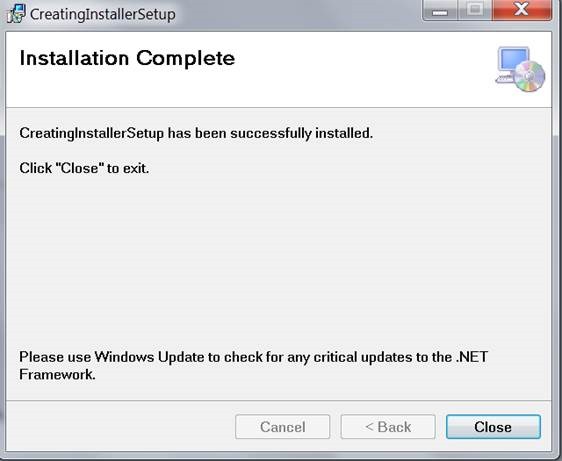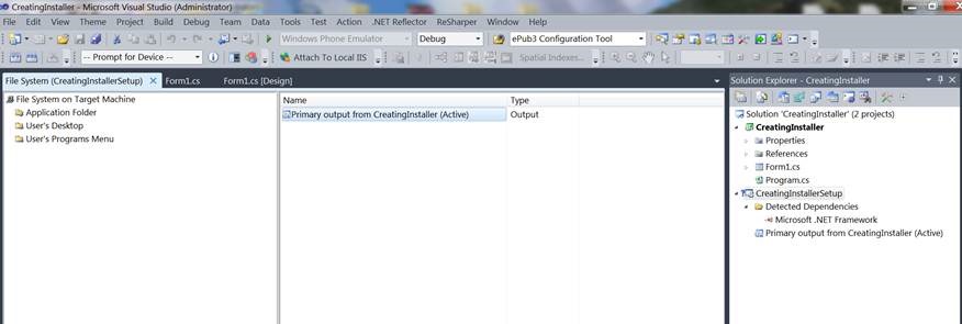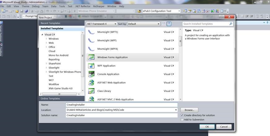 I gave the name CreatingInstaller to my windows application, obviously, you can have your own.