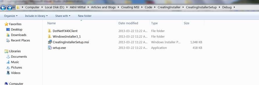 Now when we browse to Debug folder of Setup project we see two more folders as a result of actions we did just now.