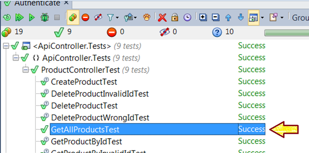 Now I know that I am not going to test my controller method through dll reference but I want to actually test its endpoint for which I need to pass an authentication token because that end point is secured and can not be authorized until I add a secure token to the Request header. Following is the integration test for GetAllProducts().