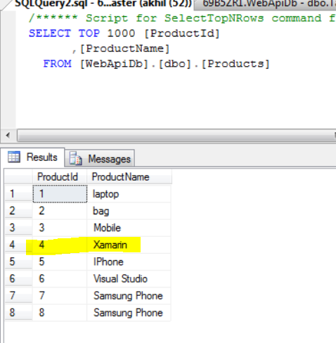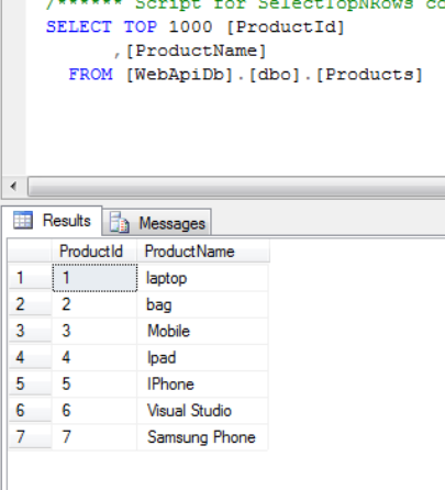 You can create any database you want. I am using SQL Server and will create a database named WebAPIdb having a table named Products for performing CURD operations.There are more tables in this database but we’ll not use them.