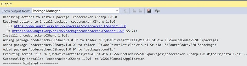 Once installed, the package manager console in visual studio will show the message for successful installation as shown below.