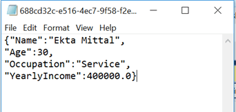 Double click on accepted-application blob to download and see the blob. We see the request for Dockey logged here as blob storage as a rejected application as it did not qualify the minimum criteria of age and yearly income to be accepted.