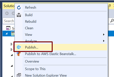 Right-click the project in solution explorer and click on Publish as shown below.