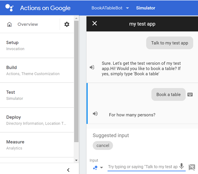 You can test the bot in Google assistant as well.