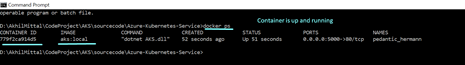 To test this image, run a container based on this image. So, run the docker run command with the -d switch to tell Docker to run this as a daemon process and use a “-p” switch to map the port 5000 on the host to the local port 80 on the container, and then, specify the name of the image i.e. aks:local.