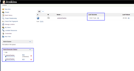- Go to the Jenkins home page and we see our job created there and at the rightmost side is the icon to trigger the build. Now, trigger the build manually to check if out workflow really works.