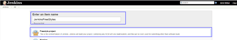 - Provide a name to the item for e.g. “JenkinsFreeStyle” and select Freestyle project as the project type.