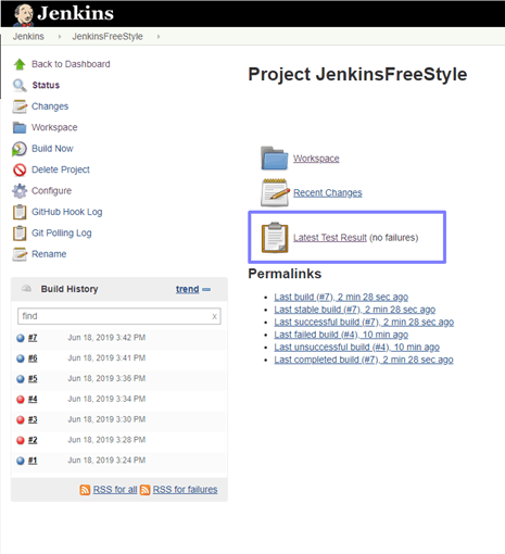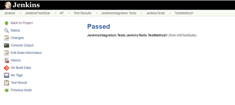 Now, save the configuration, go to the home page and run the created trigger. Now once build completes, check the build execution for the newly triggered build and we see that the build is executed, and tests are passed. You can check the test result by clicking on the “Latest Test Results” link.