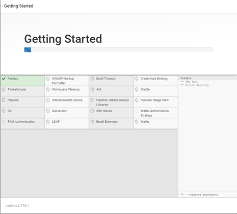 Before working with Jenkins, there are few plugins that need to be installed. Since Jenkins support many tools, frameworks, so the desired set of tools needs to be plugged into Jenkins to get the things working. We’ll install our needed set of plugins. Initially install all the ones those are recommended. So, click on the first option i.e. “Install Suggested Plugins.”