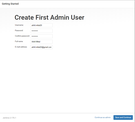 Once the basic plugins are installed, it will ask to create an Admin user. You can provide the desired details and make sure you remember the user name and password at least.